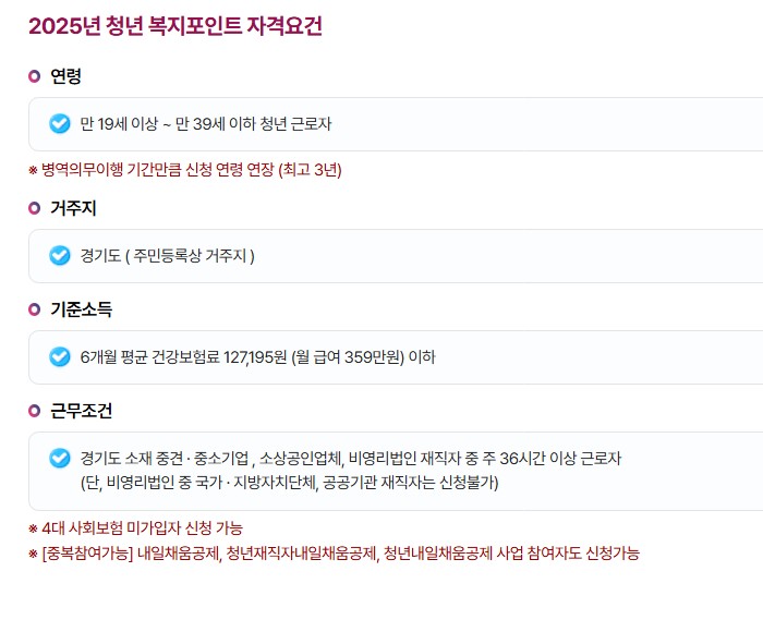 - 지급 방식: 복지포인트 전용 체크카드에 포인트 지급