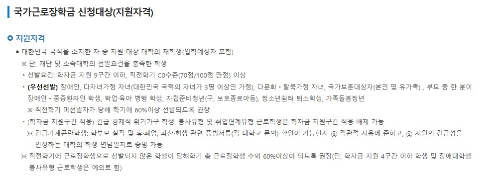 * 참고: 선발 시 “직전학기 근로경험이 없는 학생”이 60% 이상이 되도록 권장됨. 즉, 신청이 처음이라도 유리할 수 있음!