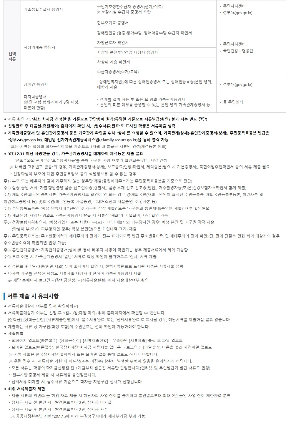 장학금 수령 조건이므로 허위 기재 금지