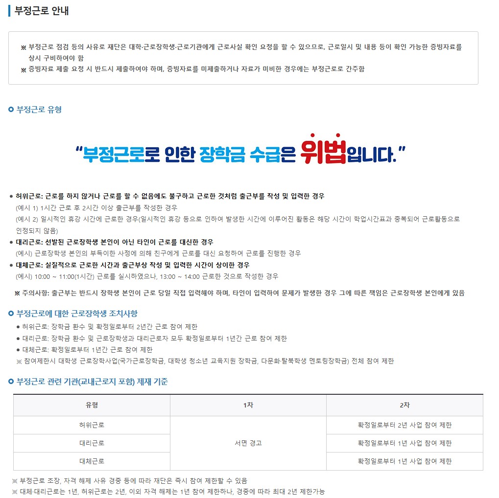| 교외 근로 | 12,430원 | 주당 20시간 (방학 중 최대 40시간 가능) |
