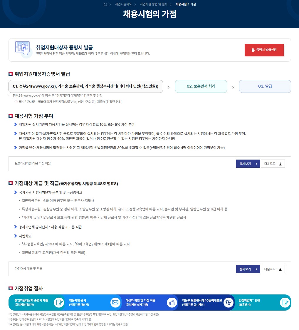| 가점취업 | 공무원 시험 가점 | 5~10% 가점 |