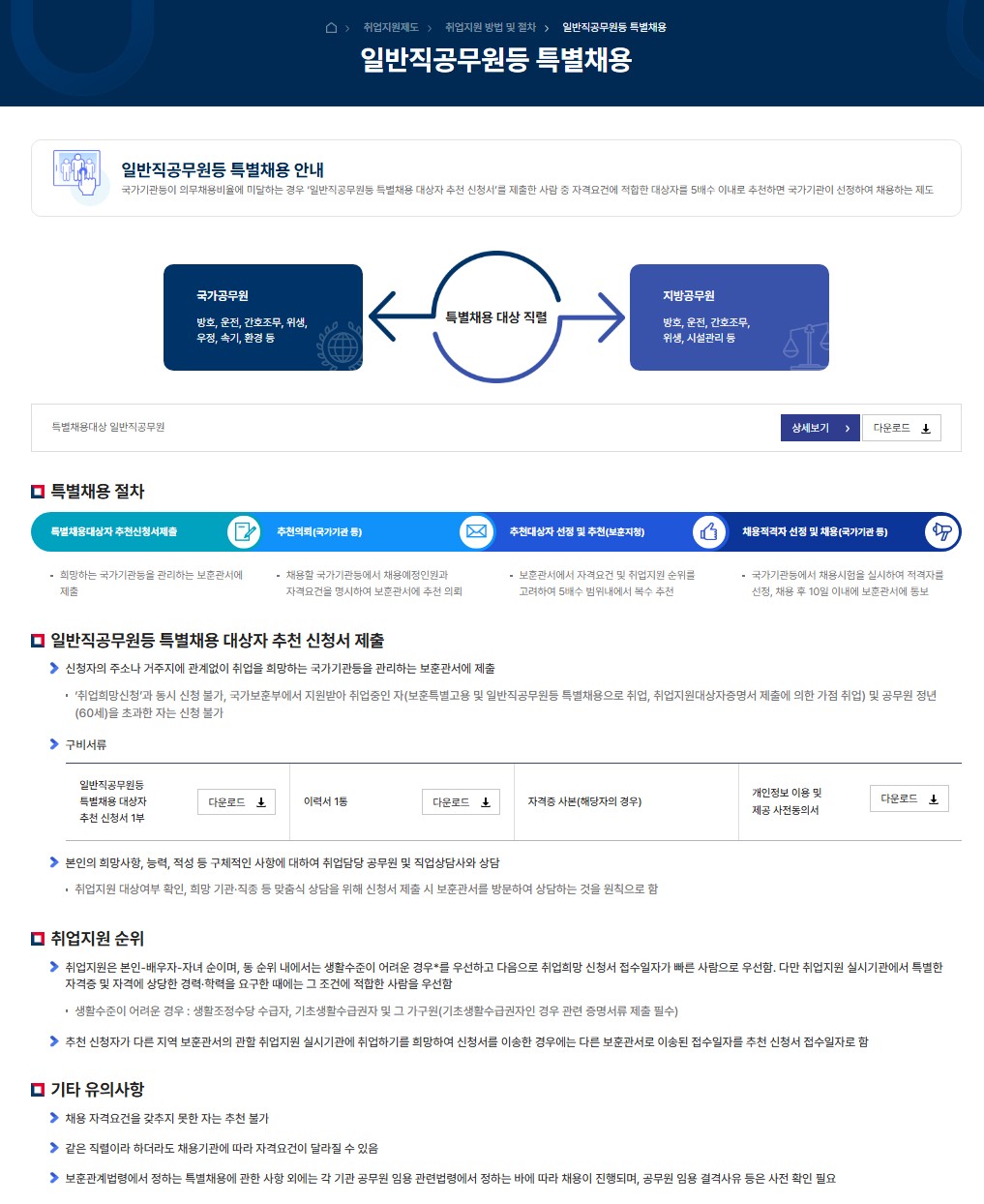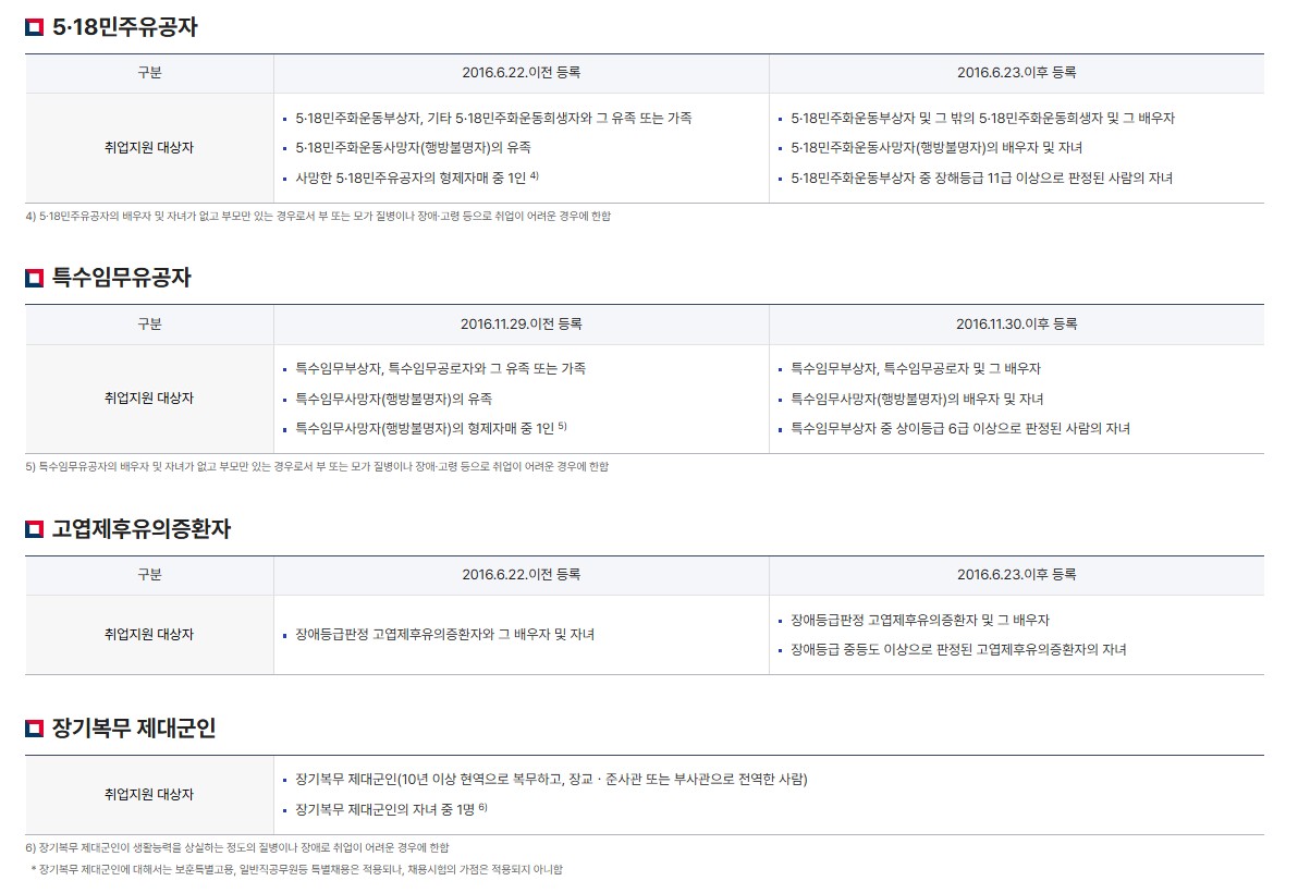 | 장기복무 제대군인 | 취업 희망자 | 보훈특별고용 등 (가점취업 제외) |