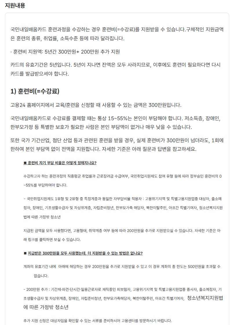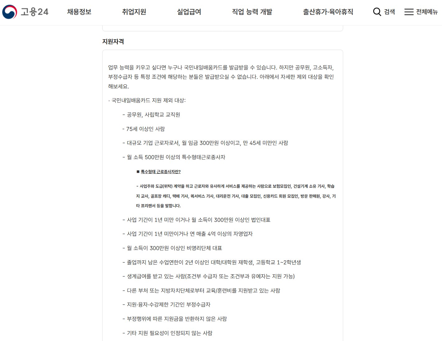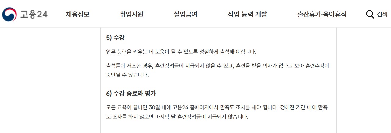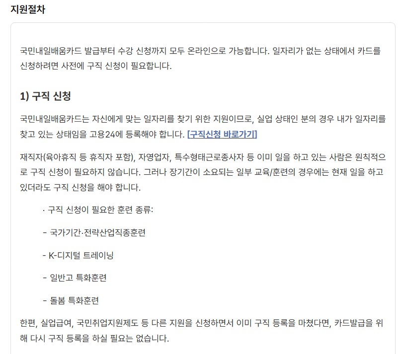 카드 발급 후에는 고용24에서 원하는 교육과정을 검색하여 수강 신청이 가능합니다.