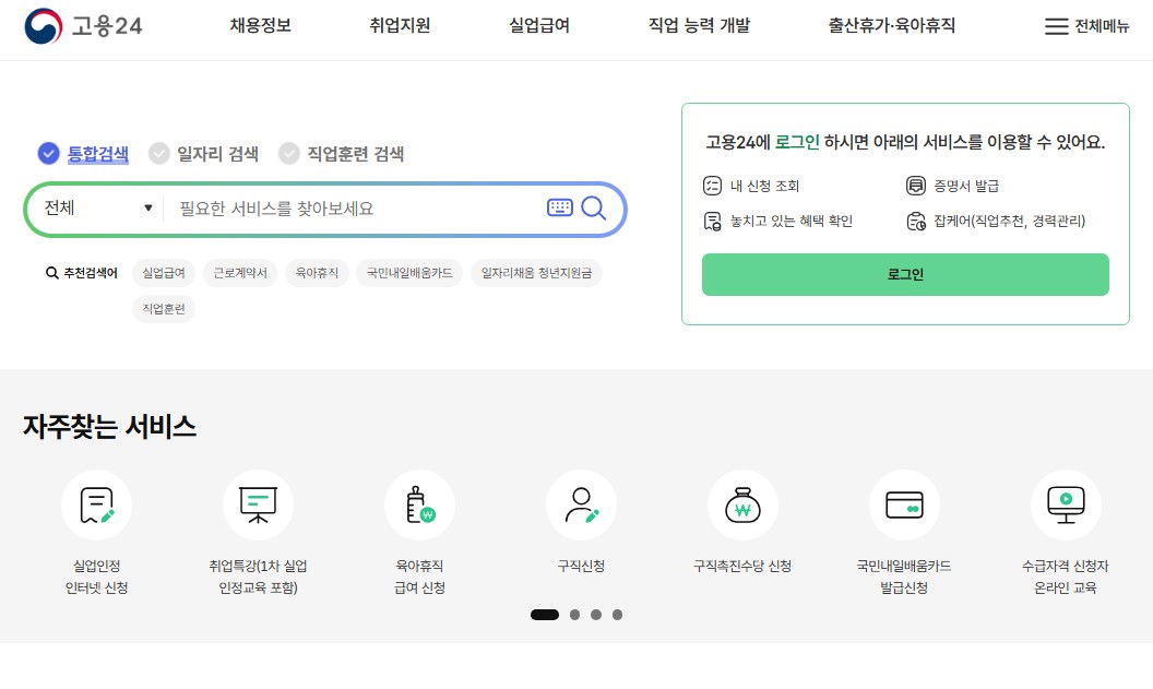온라인 신청은 고용24 홈페이지에서 회원가입 후 인증서 로그인을 통해 진행됩니다.