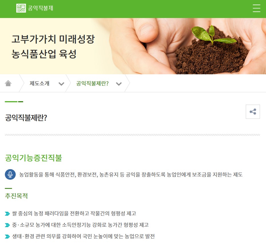 국가에서는 단순한 농업 지원을 넘어서, 환경 보호, 농촌 공동체 유지, 국토 보전이라는 공익적 가치를 실현한 농업인에게 혜택을 주는 방식으로 전환했습니다.