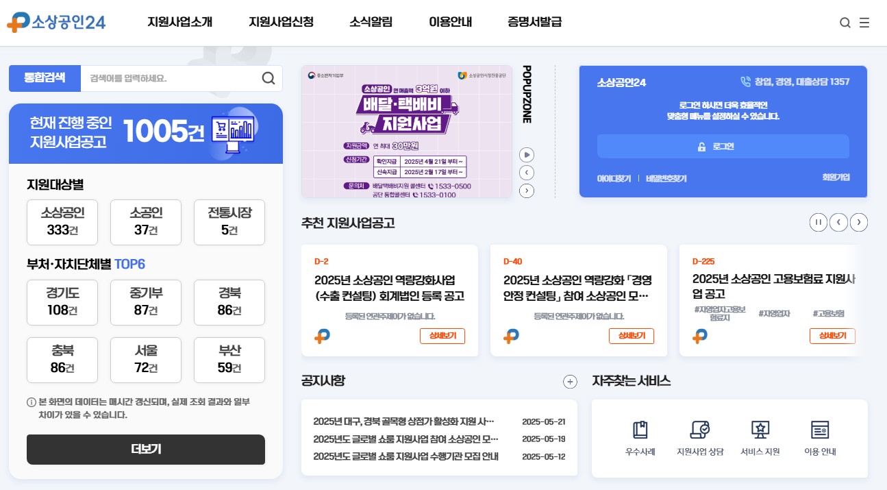 소상공인24 홈페이지 http://www.sbiz24.kr