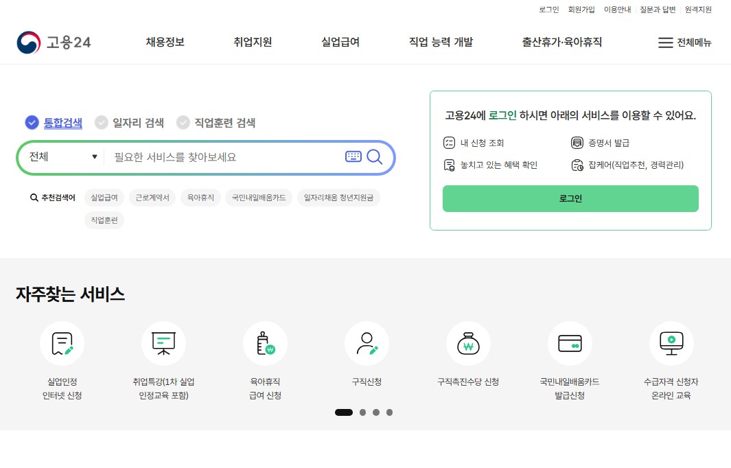 → 고용24 접속 → ‘국민내일배움카드 신청’