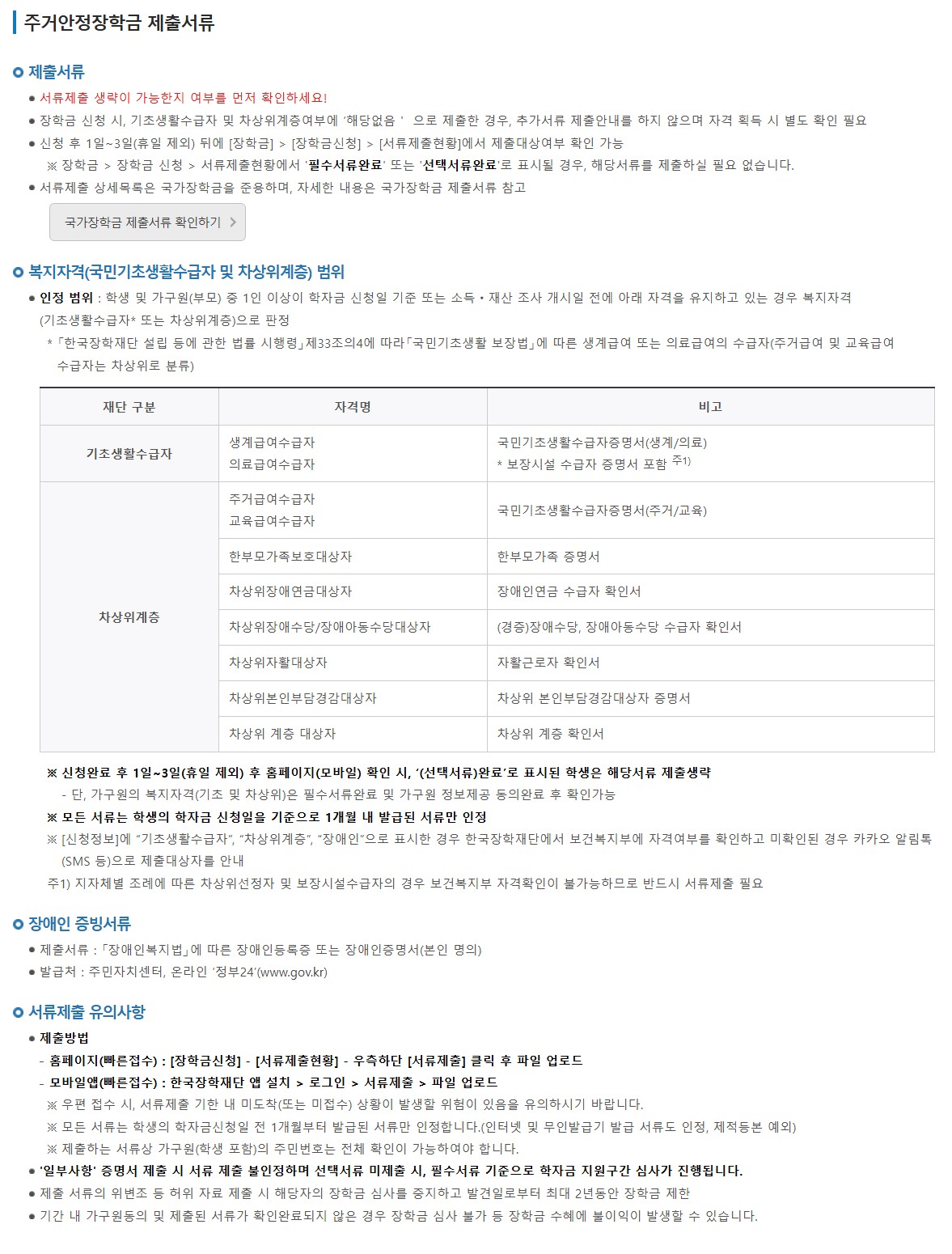 - 기초생활수급자 또는 차상위계층 대학생