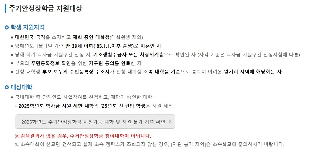 특히 기초생활수급자나 차상위계층 학생이라면 주거비만 해도 매달 수십만 원이 들고, 이는 생활비 전체를 압박하게 되죠.