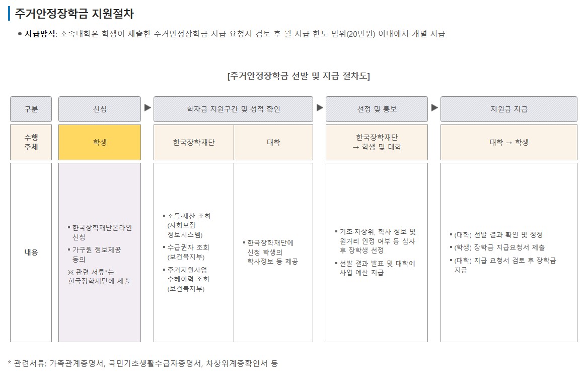 주거안정장학금은 원거리 진학으로 주거비에 시달리는 저소득 대학생들에게는 절대 놓치지 말아야 할 혜택입니다.